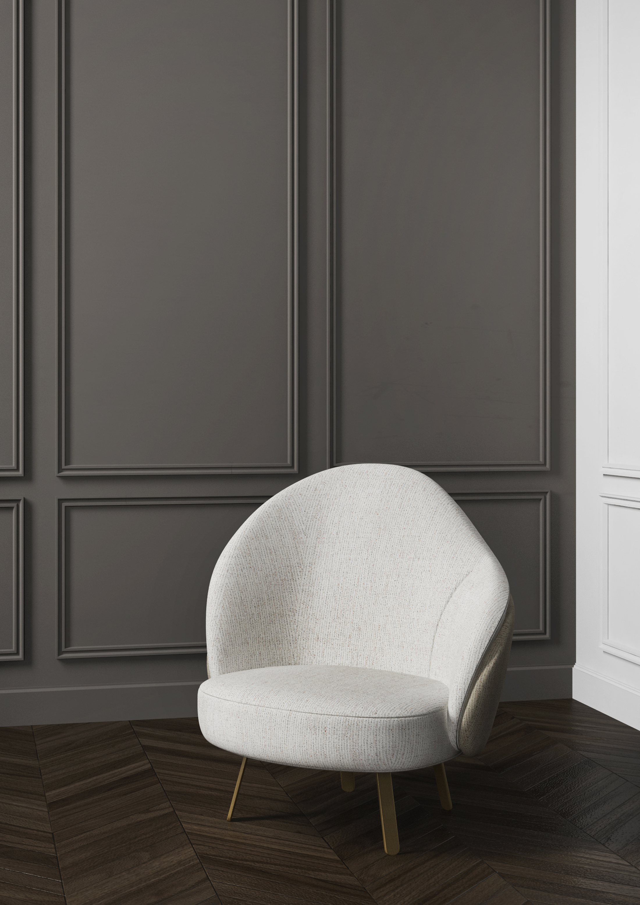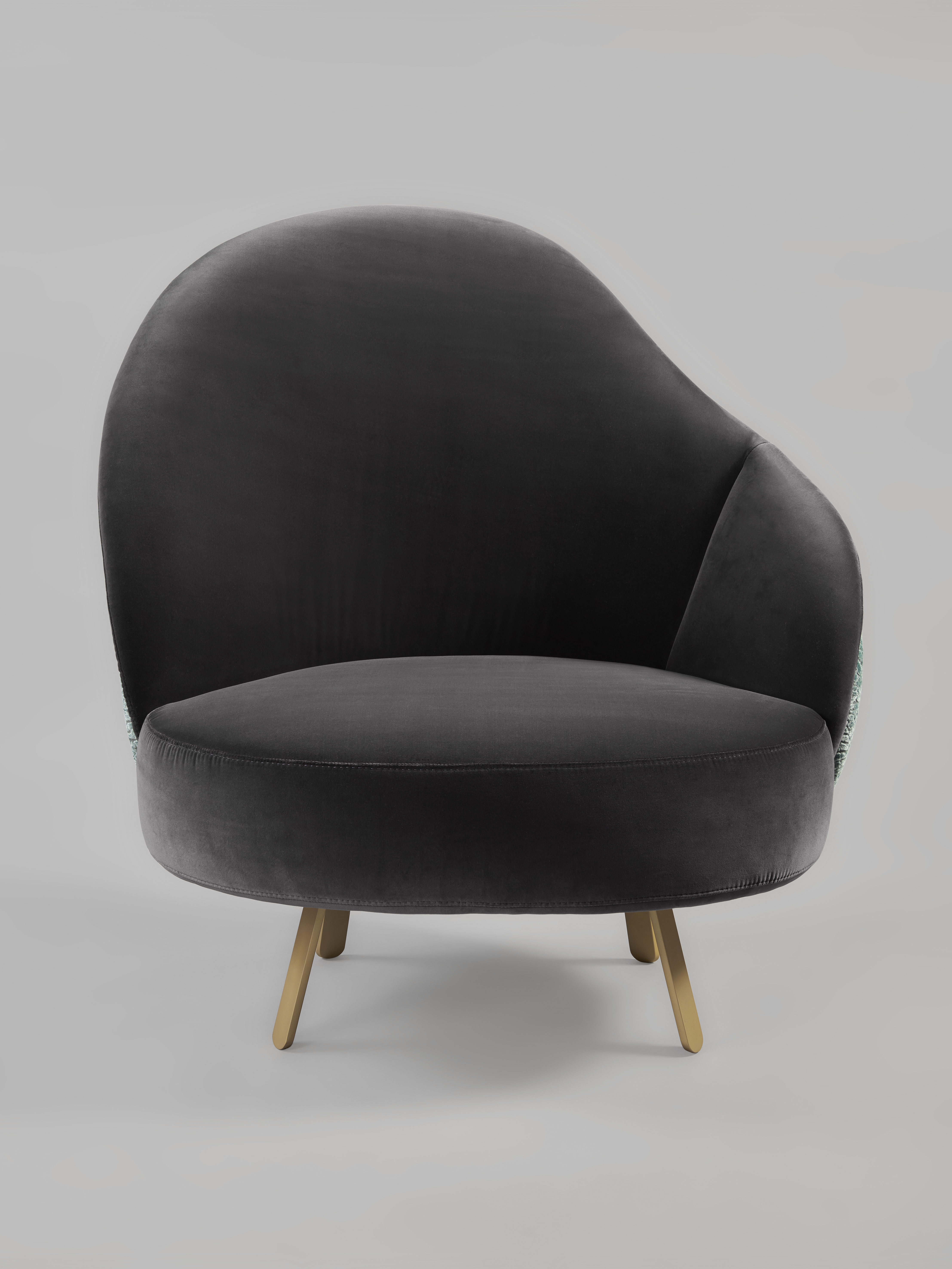 Fabric upholstery, brushed stainless steel with brass finish