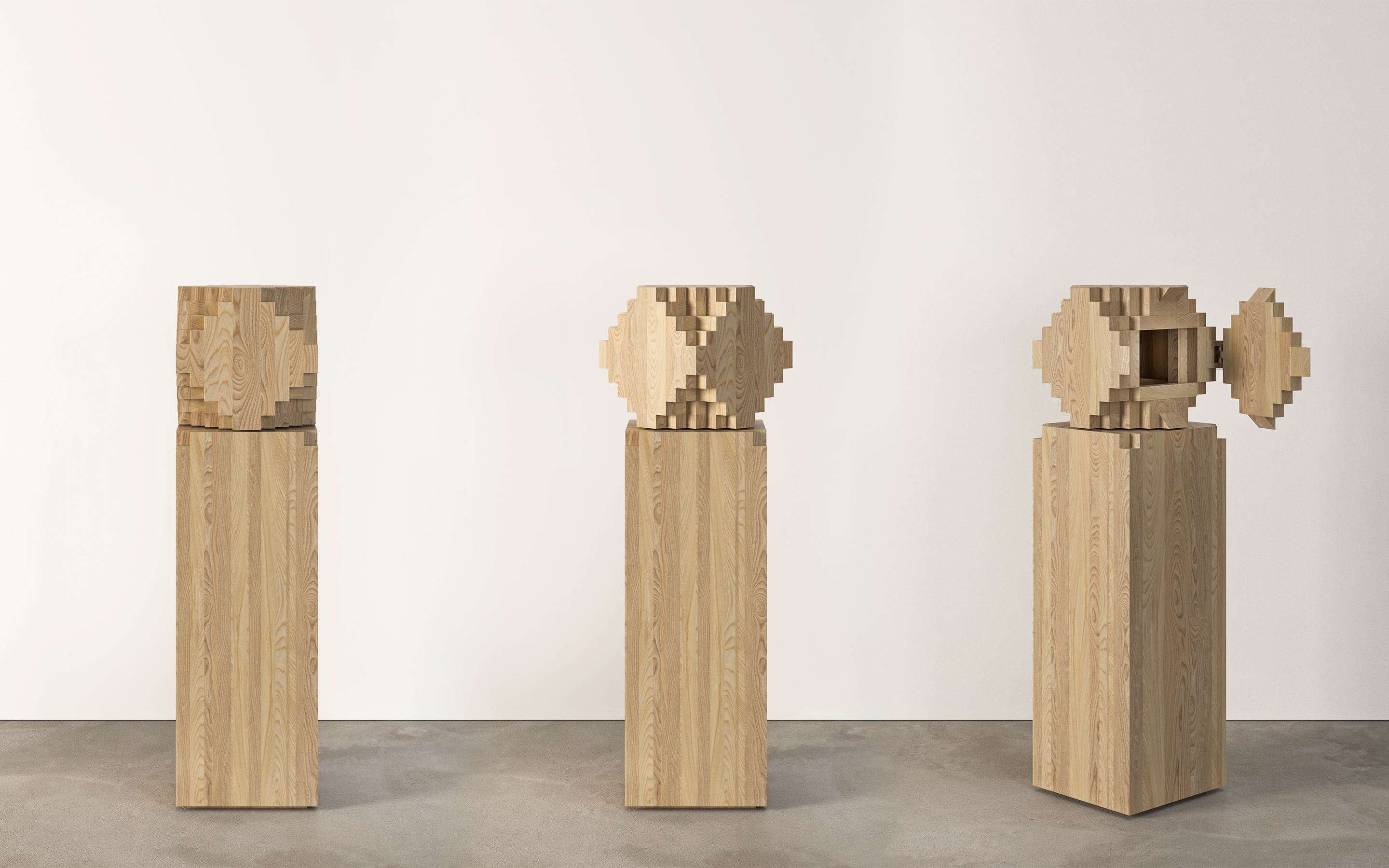 Cubus is sculptural Curio box stand on a pillar.Solid ash wood / Limited edition of 5.H170 x L40 X 40CMEnquires