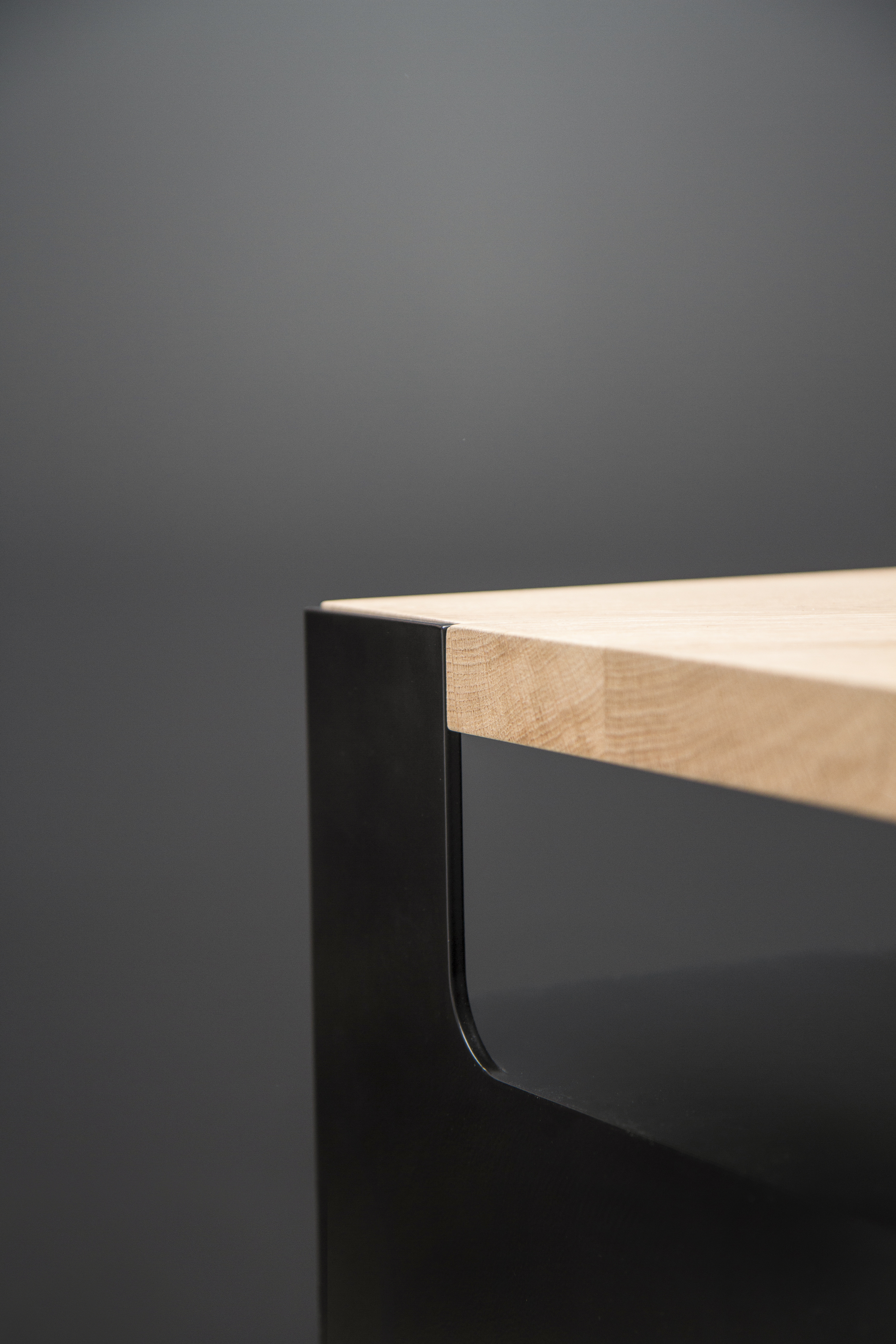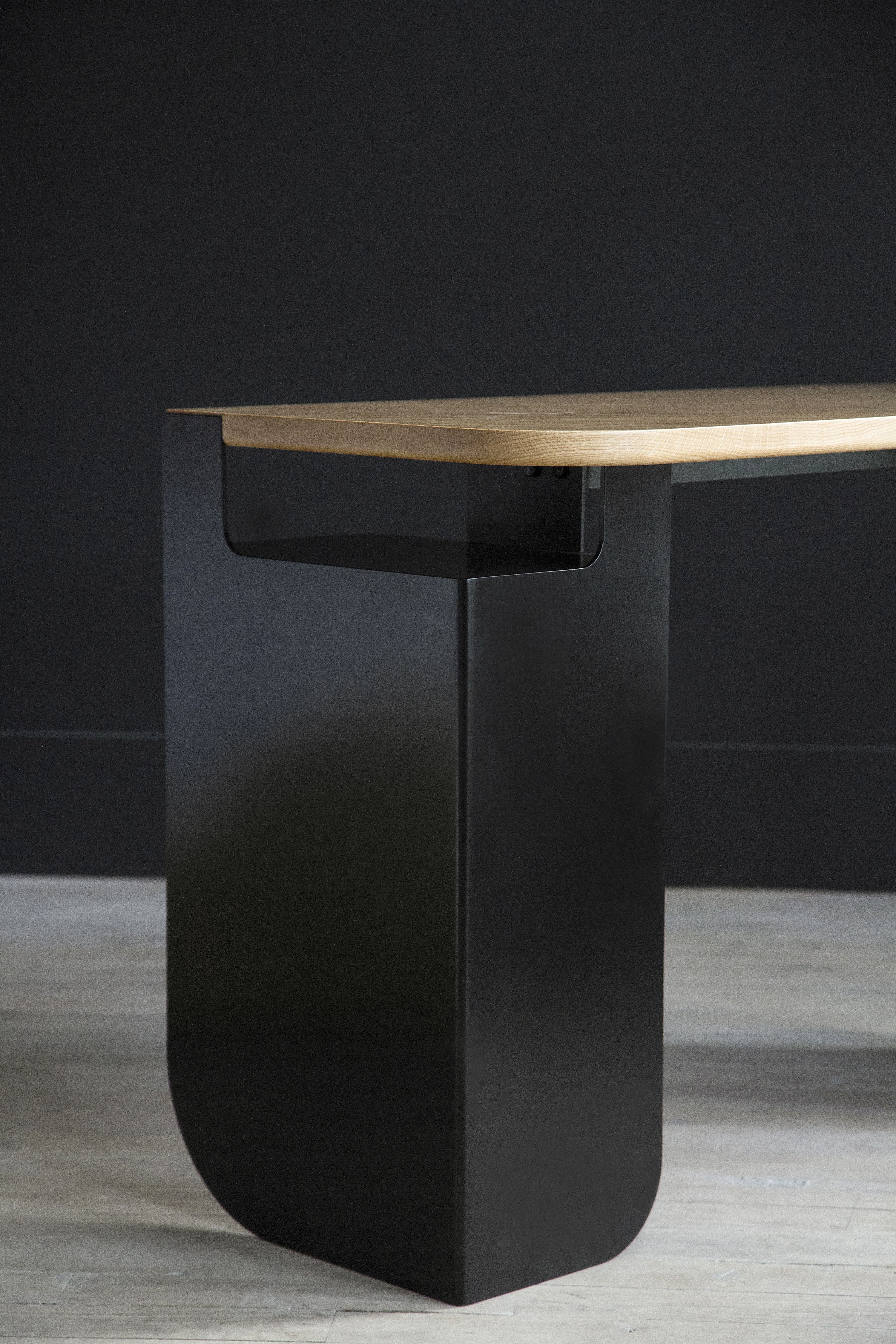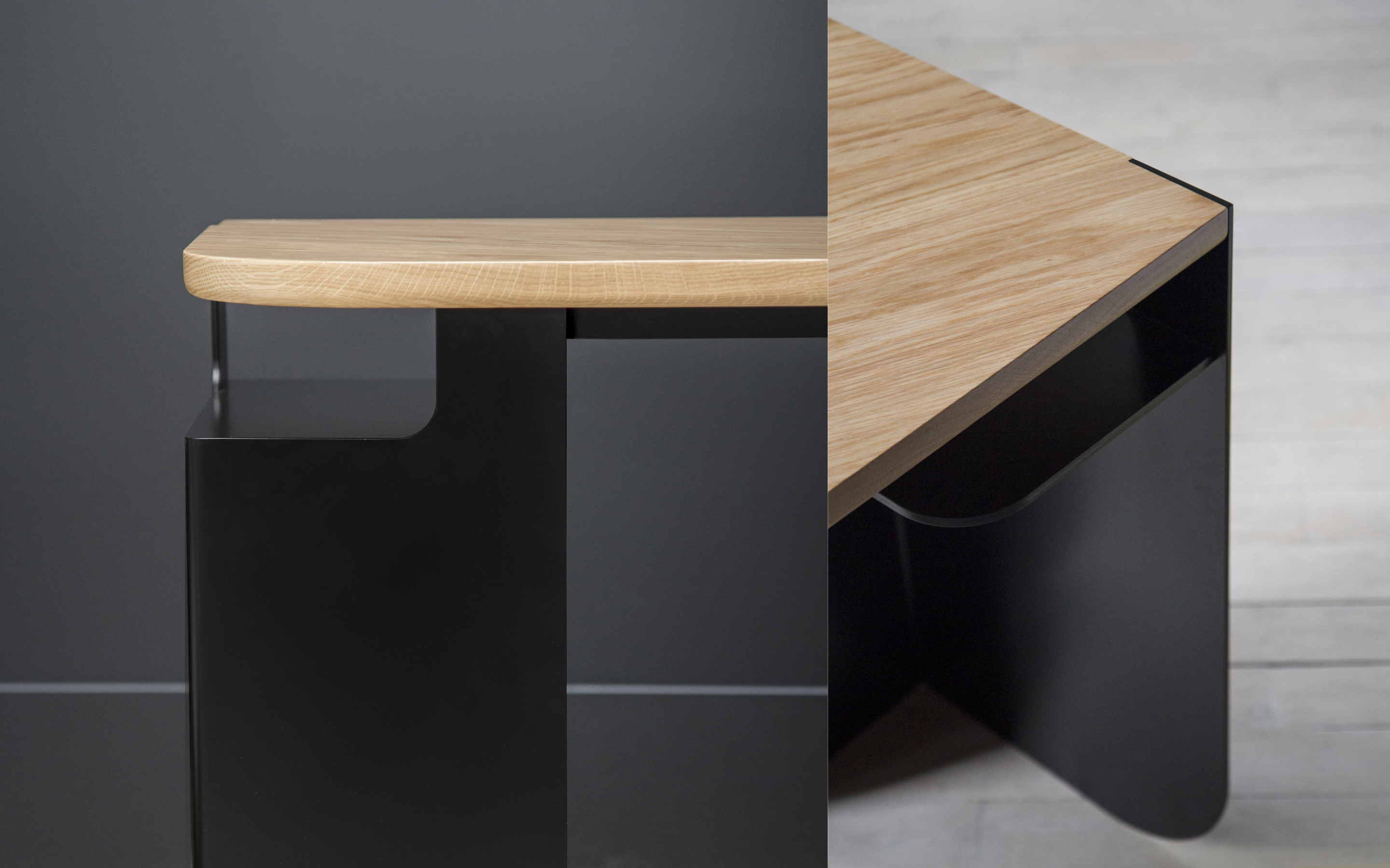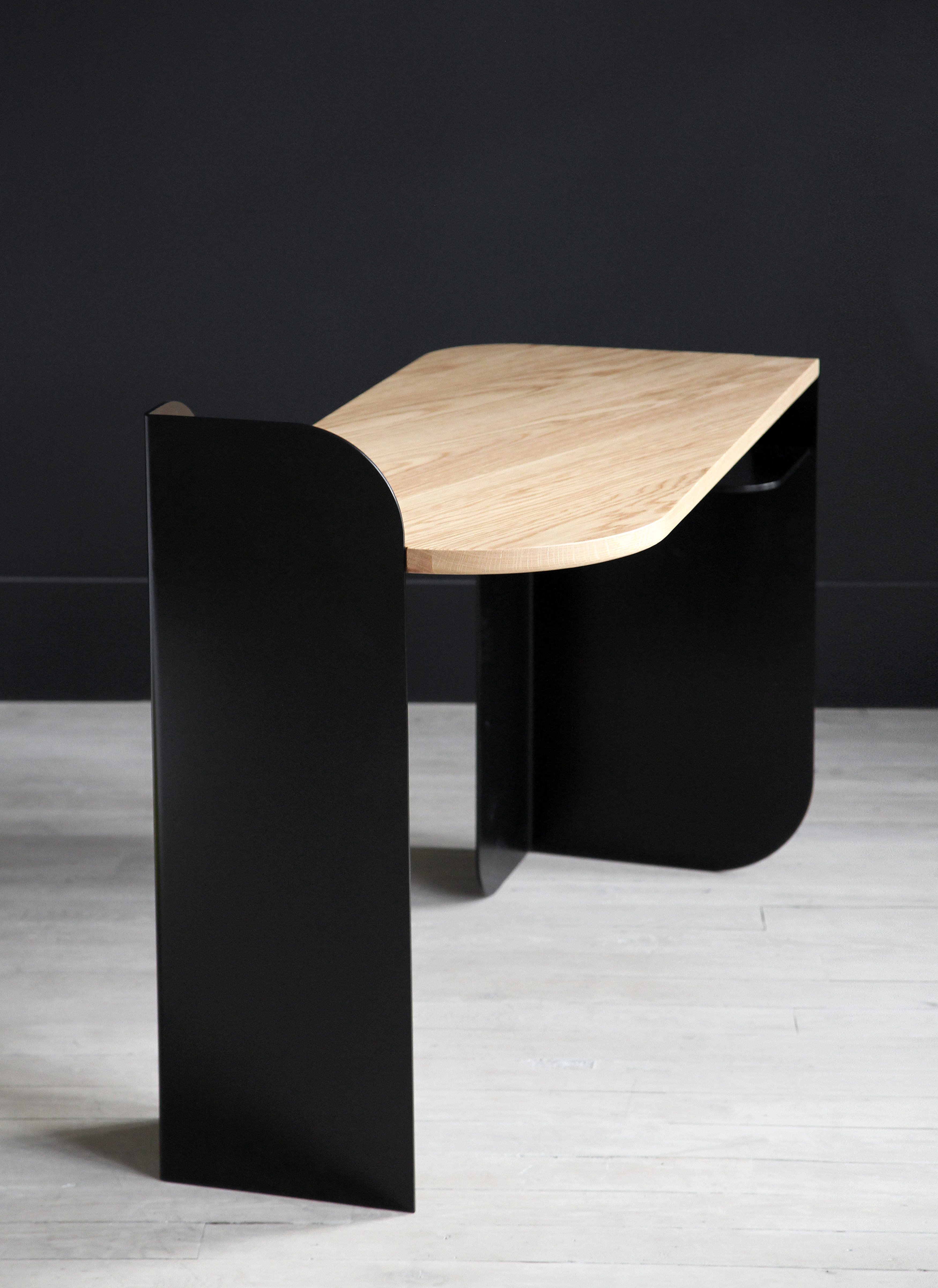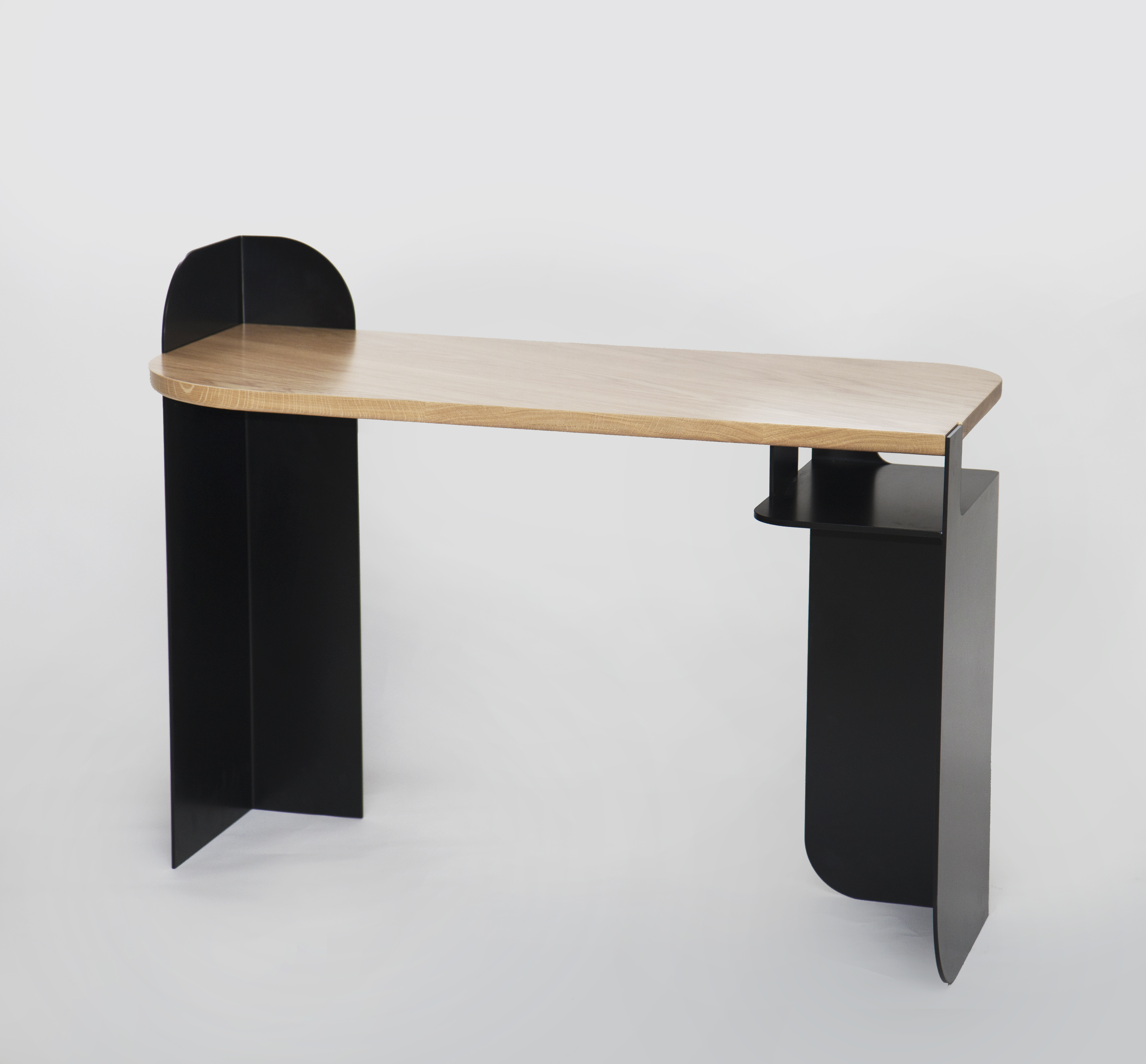 Leaf painted steel and handbrush oak top.