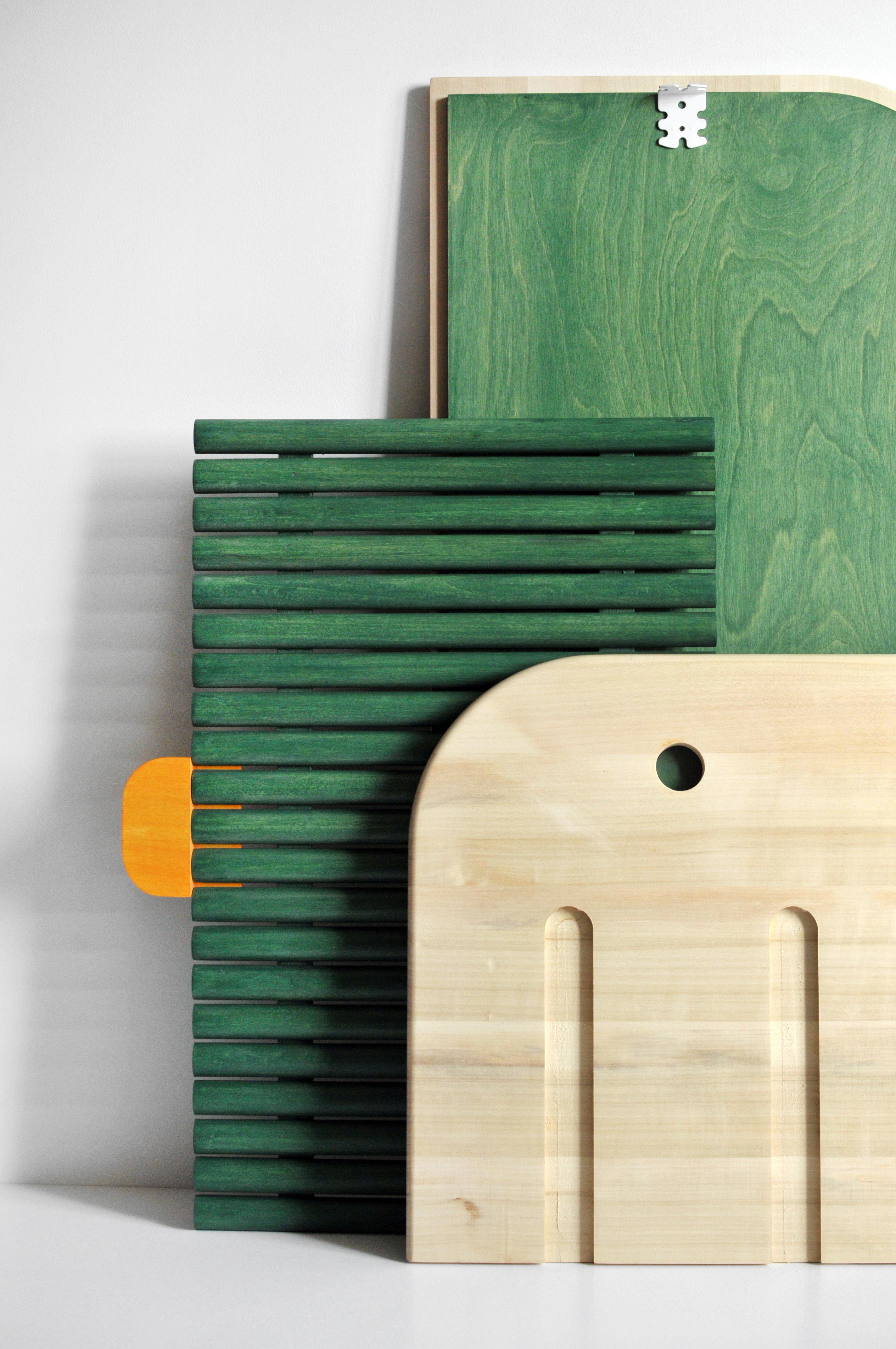 Poplar and plywood wood, water base painting.